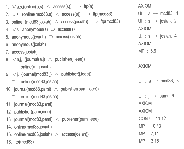 로 표현된 지식으로부터 결론에 이르는 형식 기계 (formal machinery) 를 설명하려