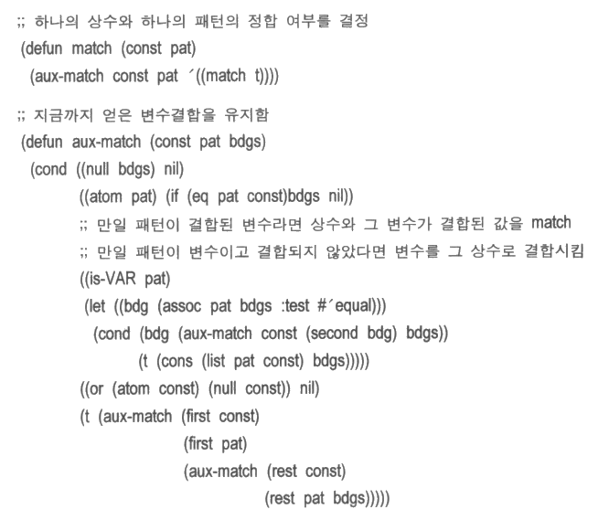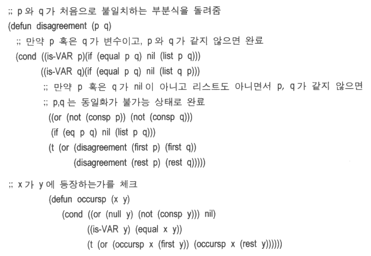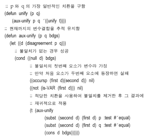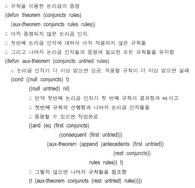 는 명제변수이다. 앞의 규칙을 Lisp 형태의 함수기호를 써서 다음과 같이 기술할 수 있다.