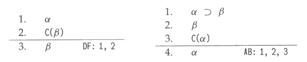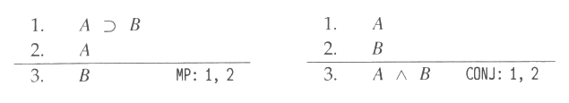 • A ⊃ B 와 A ≡ B. 단, A 와 B 는 wff