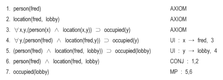 이제 우리는 논리식 형태의 지식 표현을 위한 언어를 갖게 되었다. 그러한