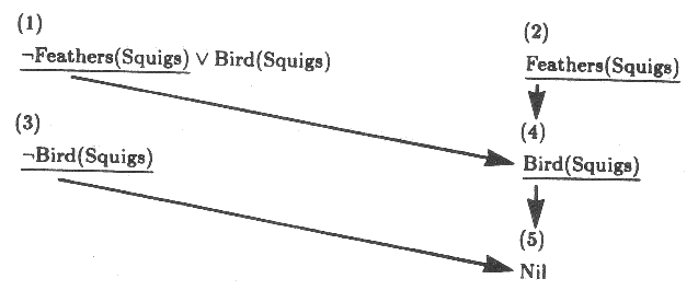 5. 가장 명백한 추론 규칙은 모더스 포넨스 (modus ponens) 이다. 그보다 더 일반적인 추론 규칙은 레졸루션 (resolution) 이다.
