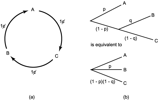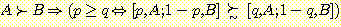 [p, A; 1 - p, [q, B; 1 - q, C]] ~ [p, A; (1 - p) q, B; (1 - p) (1 - q), C]