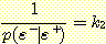 이 증거를 위에 있는 ε+ 와 아래에 있는 ε- 로 나누고 베이지안 규칙을 사용하면 다음과 같이 쓸 수 있다.
