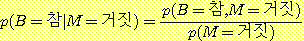 이 책에서는 참 또는 거짓을 취하는 명제변수를 사용할 때 p (B = 참, M = 거짓) 대신 p (B, ¬ M) 과 같이 간단하게 표현하는 방법도 사용할 것이다. 이 표현 방법에서 부정 부호 (¬) 가 없는 것은 참, 있는 것은 거짓을 나타내는 것으로 한다. 이러한 약식 표현 방법은 문맥상 확률 함수 (probability function) 인지 특정 확률값인지 분명한 경우에만 사용될 것이다.