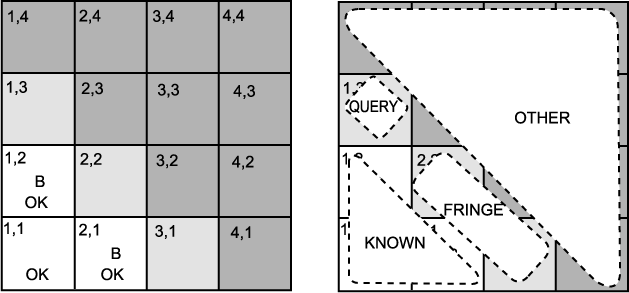 Part ¥² °ú ¥³ ¿¡ ¼¼úµÈ ³í¸®Àû ¿¡ÀÌÀüÆ®´Â ¸íÁ¦°¡ ÂüÀÎÁö, °ÅÁþÀÎÁö, ¸ð¸£´Â °ÍÀÎÁö (unknown) ¿¡ ´ëÇÑ ÀνķÐÀû °øÇåÀ» ÇÑ´Ù. ¿¡ÀÌÀüÆ®°¡ ±× ȯ°æ¿¡ ´ëÇØ ¸¹Àº »ç½ÇµéÀ» ¾Ë°í ÀÖÀ» ¶§, ³í¸®Àû Á¢±Ù¹æ½ÄÀº ¿¡ÀÌÀüÆ®°¡ ÀÛ¾÷Çϱ⿡ º¸ÀåµÈ °èȹÀ» ÇÒ ¼ö ÀÖ°Ô ÇÑ´Ù. À̰ÍÀº ÁÁÀº ÀÏÀÌ´Ù. ºÒÇàÈ÷µµ, ¿¡ÀÌÀüÆ®´Â ±×µéÀÇ È¯°æ¿¡ ´ëÇÑ ÀüüÀÇ Áø½Ç¿¡ °ÅÀÇ Á¢±ÙÇÒ ¼ö°¡ ¾ø´Ù. µû¶ó¼ ¿¡ÀÌÀüÆ®´Â ºÒÈ®½Ç¼ºÇÏ¿¡¼ ÀÛ¾÷ÇØ¾ß ÇÑ´Ù. ¿¹¸¦µé¸é Chapter 7 ÀÇ wumpus ¼¼°è ÀÇ ¿¡ÀÌÀüÆ®´Â À§Ä¡Á¤º¸ ¸¸À» ¾Ë·ÁÁÖ´Â ¼¾¼°¡ ÀÖ´Ù ; ±× ¼¼°è´Â Áï½Ã °üÂûÇÒ ¼ö°¡ ¾ø°Ô µÇ¾îÀÖ´Ù. wumpus ¿¡ÀÌÀüÆ®´Â µÎ °³ÀÇ ±¤ÀåÁßÀÇ Çϳª¿¡ ¹ß°ßÇÒ ¼ö ¾ø´Â ÇÔÁ¤À» °¡Áö°í ÀÖ´Ù´Â °ÍÀ» ¾Ë°ÔµÉ °ÍÀÌ´Ù. ÀÌ·¯ÇÑ ±¤ÀåÀÌ ±ÝÀ» ã¾Æ°¡´Â µµÁß¿¡ ÀÖ´Ù¸é, ±× ¿¡ÀÌÀüÆ®´Â À§ÇèÀ» ¹«¸¾²°í µÎ °³ÀÇ ±¤ÀåÁß Çϳª·Î µé¾î°£´Ù.