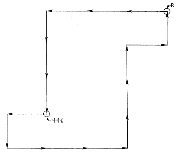 ±×¸² 3.2 : ·Îº¿ÀÇ <½ÃÀÛÁ¡> À¸·Î µ¹¾Æ¿À´Â À¯¶÷. R ÁöÁ¡À¸·ÎºÎÅÍÀÇ ±æÀº °¡´ÉÇÑ ÇÑ °¡Àå ÀûÀº ¹ß°ÉÀ½À» ÃëÇϴ ªÀº ³ë¼±¿¡ ¼ÓÇÑ´Ù.