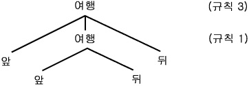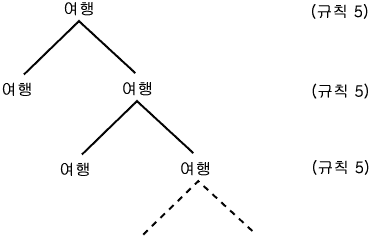 ±ÔÄ¢ 3Àº ¾î¶² ¿ëÀεǴ ¿©Çà¿¡´Ù ½ÃÀÛºÎÀ§¿¡ ¾Õ°ÉÀ½ Çϳª¿Í, ³¡³ª´Â ºÎÀ§¿¡ µÞ°ÉÀ½ Çϳª¸¦ ÷°¡ÇÑ´Ù¸é ±× °á°úµµ ¿ª½Ã ¿ëÀεǴ ¿©ÇàÀÌ µÈ´Ù´Â °ÍÀ» ¸»ÇÑ´Ù. ±ÔÄ¢ 4 ´Â ±× ¹Ý´ëÀÇ Ã·°¡¸¦ Çã¿ëÇÑ´Ù. ÀÌ·± ±ÔÄ¢µéÀº <¿©Çà> À̶ó´Â »ó¡ÀÌ µî½ÄÀÇ Ç¥½Ã ¾çÆí¿¡ ¸ðµÎ Àֱ⠶§¹®¿¡ ¼øÈ¯ÀûÀÌ´Ù. ±×·¯³ª <ȸ±Í (recursion)> ·Î ¾Ë·ÁÁø ÀÌ·¯ÇÑ ¼øÈ¯Àº ¸ðÈ£Çϱâ´Â ÇÏÁö¸¸ ¾Ç¼øÈ¯Àº ¾Æ´Ï´Ù. ¿ì¸®°¡ ±× ¹®¹ýÀ» ÇϳªÀÇ ¿©ÇàÀ» ºÐ¼®ÇÏ´Â µ¥ »ç¿ëÇÑ´Ù¸é ±×°ÍÀº ´õ ºÐ¸íÇØÁú °ÍÀÌ´Ù.