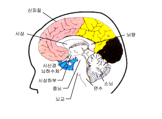 그림 5 뇌의 주요 구성 요소들. (Keeton. 1980.)