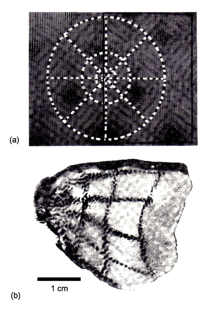 그림 8 (a) 원숭이에게 제시된 자극. (b) 시자극에 의해 산출된 뇌활성화 패턴. (Tootell Siverman, & DeValois 1982.)