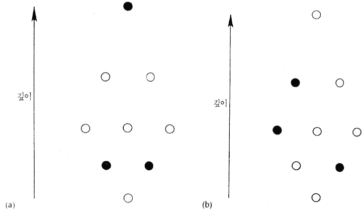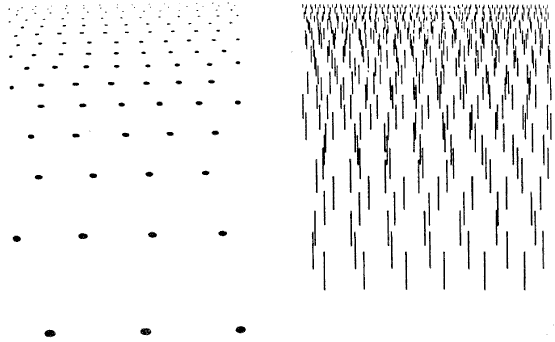 ÀÔü½Ã¿¡ ´ëÇÑ Áß¿äÇÑ ¹ß°ßÀº ÈÇ·»Ã÷ (Bela Julesz) ¿¡ ÀÇÇØ ÀÌ·ç¾îÁ³´Ù. ±×´Â ¹«¼±Á¡µé·Î ±¸¼ºµÈ »çÁøµéÀÌ ÀÔü°æ¿¡¼ º¸¿©Áú ¶§ ±íÀÌÀÇ È¿°ú¸¦ ¸¸µé ¼ö ÀÖÀ½À» ¹ß°ßÇÏ¿´´Ù. ¿©·¯ºÐÀÌ ±×¸² 5.4 (a) ¿Í (b) ¸¦ º»´Ù¸é, ¿©·¯ºÐÀº Áß¾Ó¿¡¼ ³×¸ðÀÇ ±íÀ̰¡ ÁÖº¯°ú ´Ù¸§À» º¼ °ÍÀÌ´Ù.