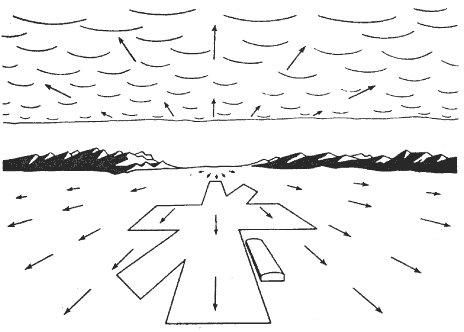 ±×¸² 5.14 : °øÇ׿¡ Âø·úÇÏ´Â ºñÇà±â Á¶Á¾»ç¿¡°Ô ³ªÅ¸³ª´Â ±¤ÇÐÀû È帧ÀÇ Àå. (From J. J. Gibson, The Perception of the Visual World. Boston : Houghton Mifflin, 1950. Copyright © 1950 by Jame J. Gibson, renewed 1977 by Houghton Mifflin Company.)