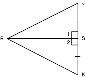 "변 – 각 - 변 정리를 보면 (긴 침묵) 음, RK 와 RJ 가 거의 확실히 (긴 침묵) 빗 (긴 침묵) 빗변이야. 내 생각에 변-각-변 정리를 여기에 쓰면 어떻게든 풀릴 것 같아 (긴 침묵). 이 정리가 말하는 '두 변과 사이각' 이 무엇인지 보자. 내가 필요로 하는 것은 두 변이야. JS 와 KS 가 그 중 하나지. 그 다음, RS = RS로 돌아갈 수 있어. 그러면 변 – 각 - 변 정리를 쓸 수 있지 (긴 침묵). 그러나 직각인 각1 과 각 2 가 어디에 들어맞지 (긴 침묵)? 잠깐, 이 각들이 어떻게 이용되는지 알겠다 (긴 침묵). JS 는 KS 와 일치하고 (긴 침묵) 각 1 과 각 2 가 직각이므로 약간 문제가 있어 (긴 침묵). 옳지, 그 정리가 무슨 뜻인지 – 다시 검토해 보자. '만일 한 삼각형의 두 변과 그 사이각이 대응하는 부분들과 일치하면' 이지. 그런데 나는 두 변과 그 사이각을 찾아 냈어. 사이각으로 각 1 과 각 2 가 있지. (긴 침묵) 이들은 모두 직각이므로, 이것은 그들이 합동임을 뜻해. 첫 번째 변으로 JS 는 변 KS 와 같아. 그 다음 변으로 RS 는 RS 와 같아. 이렇게 해서 이들이 두 변에 해당해. 그래, 이것이 변 – 각 - 변 정리야." (Anderson, 1982, pp.381-382)