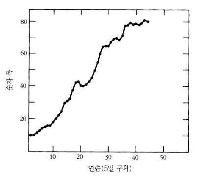 | 인지 기술의 수행은 연습의 멱함수로 향상되며 긴 파지 간격에 걸쳐 약간 감소된다. |