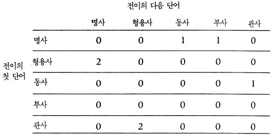 ±×¸² 17.1 : ¿µ¾î ¹®Àå ³»ÀÇ ÇϳªÀÇ ¹®¹ýÀûÀÎ ´Ü¾î ¹üÁÖ¿¡¼ºÎÅÍ ´ÙÀ½ ´Ü¾î ¹üÁÖ·ÎÀÇ ÀüÀ̸¦ Ç¥ÇöÇÏ´Â ¹è¿, Çà¿¡ ÀÖ´Â ¹®¹ý ¹üÁÖµéÀº ÀüÀÌÀÇ Ã¹ ´Ü¾î¸¦ ³ªÅ¸³»°í, ¿¿¡ ÀÖ´Â ¹üÁÖµéÀº ´ÙÀ½¿¡ ³ª¿Ã ´Ü¾î¸¦ ³ªÅ¸³½´Ù. ĵ鿡 ÀÖ´Â ¼ýÀÚ´Â <The old man left the large house suddenly> ¶ó´Â ¹®Àå¿¡¼ ¼·Î ´Ù¸¥ ÀüÀ̰¡ ¹ß»ýÇÒ ¼ö ÀÖ´Â ºóµµ¸¦ ³ªÅ¸³½´Ù.