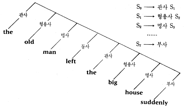 ù ¹øÂ° ¹°À½Àº ºÐ¼®±âÀÇ Àϸ¸ÀûÀÎ ÀÛµ¿ÀÇ º»ÁúÀÌ´Ù. ±×°ÍÀº ±×¸² 17.5 ÀÇ Ã¼°èó·³ ÇÏÇâÀûÀ¸·Î ÀÛ¿ëÇϱâ À§ÇØ ±ÔÄ¢µéÀ» »ç¿ëÇÒ ¼ö ÀÖ´Ù. ±×·¯ÇÑ Ã¼°èÀÇ ÇÑ À¯Çü (¼ÒÀ§ <Áõ°¡Àû ÀüÀ̸Á ü°è (augmsnted transition network)> Àº º¯Çü¹®¹ýÀ» ºÐ¼®Çϱâ À§ÇØ °³¹ßµÇ¾î ¿Ô´Ù. ±×°ÍÀº ´Þ¿¡¼ °¡Á®¿Â µ¹µé¿¡ ´ëÇÑ ¹°À½¿¡ ´äÇÏ´Â ÇÁ·Î±×·¥¿¡¼ ¿ìÁî (Bill Woods) °¡ »ç¿ëÇß´ø ¹æ½ÄÀ¸·Î, Ä«Çöõ°ú ¿ö³Ê (Eric Wanner), ±×¸®°í ±× µ¿·áµéÀº ½ÉÀû ºÐ¼®±â°¡ ÀÌ ÇÁ·Î±×·¥°ú µ¿ÀÏÇÑ ¼³°è¸¦ °¡Áú °ÍÀ̶ó°í ³íÀÇÇÏ¿´´Ù. ¶Ç ´Ù¸¥ °¡´É¼ºÀº ±× ºÐ¼®±â°¡ »óÇâÀûÀ¸·Î ÀÛ¿ëÇÏ¿© ¹®ÀåºÐ¼®À» ±¸¼ºÇϱâ À§ÇØ ±ÔÄ¢µéÀ» »ç¿ëÇÏ´Â °ÍÀÌ´Ù. ±×°ÍÀº ´Ü¾îµéÀÇ Åë»çÀû ¹üÁÖ¸¦ ÆÄ¾ÇÇÏ´Â µ¥¼ ½ÃÀÛÇÏ¿© ´õ ³ôÀº ¼öÁØÀÇ ±¸¼º¿ä¼ÒµéÀ» ÇâÇÑ »óÇâºÐ¼®À» ±¸¼ºÇÏ´Â µ¥ ±× ±ÔÄ¢ÀÇ »ç¿ëÀ» ½ÃµµÇÏ´Â °ÍÀÌ´Ù.