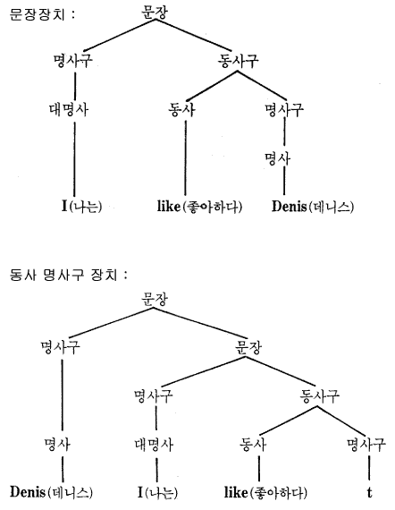 ÀÌ·¯ÇÑ ±ÔÄ¢ÀÌ, ¾Õ¿¡´Â ¸í»ç±¸°¡ ¿À°í, ±× ´ÙÀ½¿¡ ¹®Àå¿¡¼ ¸í»ç±¸¸¦ »« °Í, Áï »ý·«µÈ ¸í»ç±¸¿¡ ÇØ´çÇÏ´Â ±¸¸ÛÀ» °¡Áø ¹®ÀåÀÌ µÚµû¸£´Â ±×·¯ÇÑ ¹®ÀåÀ» ±¸¼ºÇÒ ¼ö ÀÖ´Ù´Â °ÍÀ» ÀǹÌÇÑ´Ù. ±×¿Í °°Àº ±¸¸ÛÀÌ ±¸Á¶ ¼Ó¿¡ µµÀÔÀÌ µÇ¸é, Ư¼öÇÑ ±ÔÄ¢µéÀÌ ±× ±¸¸ÛÀ» ±× ³ª¹«ÀÇ ¾Æ·¡·Î ³¡±îÁö Èê·¯°¡´Â °ÍÀ» Çã¿ëÇϰí, ±×°ÍÀº ÀÌÀüÀÇ º¯Çü¹®¹ý ÀÌ·ÐÀÇ º¯ÇüµÈ ÆÄ»ý¿¡¼Ã³·³ ÈçÀû¿ä¼ÒÀÎ t ·Î ´ëÄ¡µÈ´Ù. µû¶ó¼ ÁÖÁ¦ÈµÈ ¹®ÀåÀº ´ÙÀ½°ú °°Àº ±¸Á¶¸¦ °®´Â´Ù. (p. 386 ±×¸² ÂüÁ¶) : °¡Áî´ÙÀÇ ¹®¹ýÀº º¯ÇüÀ» »ç¿ëÇÏÁö ¾Ê°íµµ ÀÌ·±Àú·± ¹®ÀåµéÀ» ¼³¸íÇÑ´Ù.