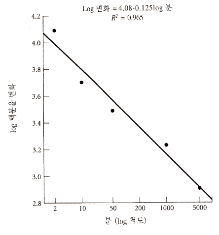 여기서 C = 10 이다. 즉, 이 수행 척도는 지연 기간의 멱함수이다. 흥미롭게도, 그림 1 도 에빙하우스의 파지 함수로서 멱함수이다. 망각 연구에 관한 최근 개관에서, 윅스티드와 에브센 (Wixted & Ebbsen. 1991) 은 파지 함수는 일반적으로 멱함수라고 결론 내렸다. 이것을 망각의 멱법칙 (power law of forgetting) 이라고 부른다. 앞 장에서 학습의 멱법칙 – 연습 곡선이 멱함수로 기술되었음을 상기하라. 두 함수 모두가 부적 가속화를 보이지만, 둘 간에는 중요한 차이가 있다. 연습 함수는 연습과 함께 향상이 감소됨을 보여 주는 반면 파지 함수는 지연과 함께 손실이 감소됨을 보여준다.