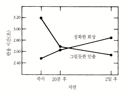 | 기억 흔적의 강도는 파지 간격의 멱함수로 쇠잔한다. |