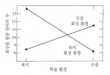 | 실험실 밖에서 학습한 재료는 실험실 내에서 학습한 재료에 의해 간섭을 받을 수 있다. |