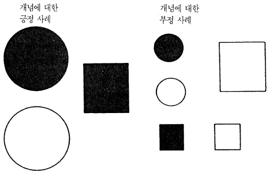 (º¸Åë ±×·¸µíÀÌ ÀÌÇØ¸¦ µ½±â À§ÇØ ³ª´Â ±× ÇÁ·Î±×·¥ÀÇ Åë»ç¸¦ ¹«½ÃÇϰڴÙ.) ´ÙÀ½¿¡ ÇнÀÀ» ¿ëÀÌÇÏ°Ô ¸¸µé±â À§ÇØ °í¾ÈµÈ ¼ø¼¿¡ µû¶ó µµ¿ÍÁÖ´Â ¼±»ý (teacher) ÀÌ ±àÁ¤Àû »ç·Êµé°ú ºÎÁ¤Àû »ç·ÊµéÀ» Á¦½ÃÇÑ´Ù. µû¶ó¼ ±×¸²¿¡ ³ª¿À´Â µÎ ¹øÂ° Ç׸ñÀº <Á¶±×¸¸ Â÷À̷ΠƲ¸° °Í (near miss)> ÀÌ µÈ´Ù. Áï ¸ñÇ¥°³³ä¿¡ ÃæºÐÈ÷ ±ÙÁ¢ÇØ ÀÖ¾î¼ Á¤º¸ÀûÀ̶ó ÇÒ ¼ö ÀÖ´Â ºÎÁ¤»ç·ÊÀÌ´Ù. ±× ÇÁ·Î±×·¥Àº Á¶±×¸¸ Â÷À̷ΠƲ¸° °ÍÀÇ ¿¹¸¦ Ȱ¿ëÇÏ¿© ÇöÀçÀÇ °¡¼³À» Á¶Á¤ÇÑ´Ù. ¸¸¾à¿¡ ±× °¡¼³ÀÌ Á¶±×¸¸ Â÷À̷ΠƲ¸° °Í¿¡¼ °á¿©µÇ¾î ÀÖ´Â °ü°è¸¦ Æ÷ÇÔÇÑ´Ù¸é, ÀÌ °ü°è´Â ±× ¸ñÇ¥°³³ä¿¡ ÇÊ¿äÇÑ ºÎºÐÀ¸·Î ÁöÀûµÈ´Ù. ±×·¯¹Ç·Î À§ ¿¹¿¡¼ ±âµÕµéÀº »óÀιæÀ» ¶°¹ÞÄ¡°í ÀÖ¾î¾ß¸¸ ÇÑ´Ù. ¹Ý´ë·Î ¸¸¾à¿¡ ºÎÁ¤ »ç·Ê°¡ ±×¸²ÀÇ ¼¼ ¹øÂ° Ç׸ñ¿¡¼Ã³·³ ±× °¡¼³¿¡¼ ºüÁ® ÀÖ´Â °ü°è¸¦ Æ÷ÇÔÇϰí ÀÖ´Ù¸é, ÀÌ °ü°è´Â ±× °³³äÀÇ ¿ä¼Ò·Î µµÀԵǴ °ÍÀÌ ±ÝÁöµÇ¾î¾ß ÇÏ´Â °ÍÀ¸·Î Á¤ÇÑ´Ù. Áï À§ÀÇ ¿¹¿¡¼ µÎ ±âµÕÀº ¼·Î ¸Â´ê¾Æ À־ ¾ÈµÈ´Ù. ¾î¶² ±àÁ¤ »ç·Ê´Â ÇöÀçÀÇ °¡¼³°ú ÀÏÄ¡ÇÏÁö ¾Ê´Â ¾î¶² °ÍÀ» Æ÷ÇÔÇÒ ¼öµµ ÀÖ´Ù. ¿¹¸¦ µé¾î (°¡¼³¿¡¼´Â Á÷»ç°¢Çü º®µ¹ÀÇ »óÀιæÀ» ÇÔÀÇ ÇßÁö¸¸) ±×¸®ÀÇ ³× ¹øÂ° Ç׸ñÀº »óÀιæÀ¸·Î Á÷»ç°¢Çü º®µ¹À» °®°í ÀÖÁö ¾Ê´Ù. ¸¸¾à µÎ ±àÁ¤ »ç·Ê Ç׸ñµéÀÌ °øÅëµÈ »óÀ§ ¹üÁÖ °³³äÀ» °®´Â´Ù¸é ÀÌ »óÀ§ ¹üÁÖ °³³äÀº ¿ø·¡ °¡¼³¿¡ ÀÖ´ø ¿ë¾î¸¦ ´ëüÇÑ´Ù. ±×·¸Áö ¾ÊÀ¸¸é µÎ ±àÁ¤ »ç·Êµé ³»¿ëÀÇ ¼±Á¢À̾î¾ß¸¸ ÇÑ´Ù (<Á÷»ç°¢Çüº®µ¹ »óÀιæÀ̳ª ½û±â »óÀιæÀ» ¶°¹ÞÄ¡´Â> °ÍµéÀÇ ¼±Á¢À̾î¾ß ÇÑ´Ù). ±×·¯³ª ¸¸¾à ±× ¼¼»ó¿¡´Â º®µ¹°ú ½û±â¸ð¾çµé¸¸ ÀÖ´Ù¸é »óÀιæÀÌ º®µ¹À̰ųª ½û±â¸ð¾çÀ̾î¾ß¸¸ ÇÑ´Ù´Â °ÍÀ» ¸í½ÃÇÒ ÇÊ¿ä´Â ¾ø´Ù.