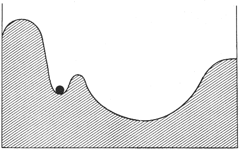 ±× ÀýÂ÷ÀÇ ÇÑ °¡´ÉÇÑ °áÇÔÀº ±×°ÍÀÌ ±¹¼Ò ÃÖ¼ÒÄ¡ (local minimum) ¿¡ °íÁ¤µÉ ¼öµµ ÀÖ´Ù´Â °ÍÀÌ´Ù. ±¹¼Ò ÃÖ¼ÒÄ¡¶õ °µµ»ó¿¡¼ÀÇ ÀÛÀº º¯ÈµéÀÏÁö¶óµµ ½ÇÁ¦ ÃÖÀú ¿À·ù¸¦ »êÃâÇÏ´Â °ªµé°ú´Â ±× °ªÀÌ °Å¸®°¡ ¸ÖÁö¸¸, ´õ ³ª»Û °á°ú¸¦ °¡Á®¿À´Â (ÁÖ¼® : ÃÖÀû °á°ú¸¦ »êÃâÇÏÁö ¸øÇÏ´Â) °ªÀÌ´Ù. ÀýÂ÷´Â °¡Àå ³·Àº ÁöÁ¡À» ¹ß°ßÇÏ·Á°í ÀÌÂ÷¿øÀÇ Ç¥¸é ÁÖÀ§·Î º¼ º£¾î¸µÀ» ¿òÁ÷ÀÌ´Â °Í°ú À¯»çÇÏ´Ù. º¼ º£¾î¸µÀº ±×¸² 10.5 ÀÇ ´Ü¸éµµ¿¡¼ ¹¦»çµÈ °Íó·³ ½ÇÁ¦ ÃÖ¼ÒÄ¡¿¡´Â ¾ÆÁÖ ¸ø ¹ÌÄ¡´Â ±¹¼ÒÀûÀÎ °ñÂ¥±â¿¡ °íÁ¤µÇ¾î ¹ö¸± ¼öµµ ÀÖ´Ù. ¿À·ù ÈÄÁøÀüÆÄ¹ýÀ» »ç¿ëÇÏÁö´Â ¾ÊÁö¸¸ ÀÌ·¯ÇÑ ¹®Á¦¸¦ ÇØ°áÇÏ´Â ºÐ»êü°è°¡ ÀÖ´Ù. ±×·¯³ª Àû¾îµµ ÀÌÁ¦²¯ ¹ßÀüµÇ¾î ¿Ô´ø ÇÁ·Î±×·¥µé¿¡¼´Â ±¹¼Ò ÃÖ¼ÒÄ¡¿¡ °íÁ¤µÇ´Â À§ÇèÀÌ ¾ÆÁÖ ½É°¢ÇÑ °ÍÀ̶ó°í ÀÔÁõµÇÁö´Â ¾Ê¾Ò´Ù.
