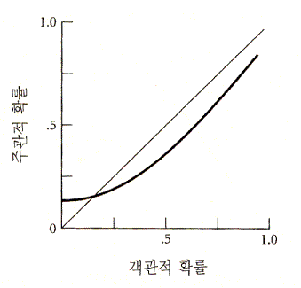 그림 7 주관적 확률이 객관적 확률과 관련되는 함수. (Kahneman & Tversky. 1984)