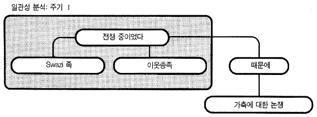 ¸ñÇ¥°¡ À̾߱⠼ӿ¡ Æ÷ÇԵǾúÀ» ¶§´Â, À̾߱⠼ӿ¡ ¹¦»çµÈ ÇàÀ§¸¦ Á¶Á÷Çϴµ¥ ÀÌ ¸ñÇ¥°¡ ÀÌ¿ëµÈ´Ù. ¸ñÀûÀ» ´Þ¼ºÇϰíÀÚ ÇÏ´Â µîÀå Àι°ÀÇ ³ë·ÂÀº ±Û ¼Ó¿¡ ÀÖ´Â ¸¹Àº Áø¼úµé°£ÀÇ Àΰú °ü°è¸¦ ¼º¸³½ÃŲ´Ù. Chicago ´ëÇб³ Trabasso ¿Í ±×ÀÇ Çлýµé (Trabasso & Sperry, 1985; Trabasson & van den Broek, 1985) ÀÌ ¼öÇàÇÑ ¿¬±¸´Â µ¶ÀÚ°¡ ±Û ¼Ó¿¡¼ ¹«¾ùÀÌ Áß¿äÇÑÁö¸¦ ÆÇ´ÜÇÏ´Â ±âÃÊ·Î ÀÛ¿ëÇÏ´Â °ÍÀÌ ¹Ù·Î ÀÌ Àΰú °ü°è¶ó´Â °ÍÀ» ¹àÇû´Ù. Àΰú °ü°è (causal relation) ¸¦ °ø½ÄÀûÀ¸·Î Áø¼úÇϸé ÀÌ·¸°Ô µÈ´Ù : ¸¸¾à »ç°Ç A °¡ ÀϾÁö ¾ÊÀ¸¸é »ç°Ç B µµ ÀϾÁö ¾Ê´Â´Ù¸é, »ç°Ç A ´Â »ç°Ç B ÀÇ ¿øÀÎÀ¸·Î °£ÁֵȴÙ. ¹Ù²Ù¾î ¸»ÇØ, ¸¸¾à ´©±º°¡°¡ ¿©·¯ºÐÀÇ ¸ñÇ¥ ´Þ¼º¿¡ ÇÊ¿äÇÑ »ç°ÇÀ» Á¦°ÅÇØ ¹ö¸®¸é, ¿©·¯ºÐÀº ¸ñÇ¥¸¦ ´Þ¼ºÇÒ ¼ö ¾ø´Ù. Áý ¾ÈÀ¸·Î µé¾î°¡´Â °ÍÀ» ¸ñÆ÷·Î °í·ÁÇØ º¸ÀÚ. ¹®À» ¿Áö ¾Ê°í´Â Áý ¾ÈÀ¸·Î µé¾î °¥ ¼ö ¾ø°í, ¹®Àº ÀÚ¹°¼è¸¦ µûÁö ¾ÊÀ¸¸é ¿ ¼ö ¾ø´Ù. ±×¸®°í ¿¼è¸¦ ¼Õ¿¡ µéÁö ¾Ê°í´Â ÀÚ¹°¼è¸¦ µþ ¼ö°¡ ¾ø´Ù. ±×·¯¹Ç·Î ÀÌ ¼¼ °¡Áö ÇàÀ§´Â ¸ðµÎ ÁýÀ¸·Î µé¾î°£´Ù´Â ¸ñÀû°ú ÀΰúÀûÀÎ (ÇʼöÀûÀÎ) °ü°è¸¦ ¸Î°í ÀÖ´Â °ÍÀÌ´Ù.