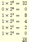 ³ª¸ÓÁö¸¦ ¾Æ·¡¼ºÎÅÍ À§·Î ¾´´Ù. ±×·¡¼ 4610 = 1011102 ¶ó´Â °ÍÀ» ¾È´Ù.