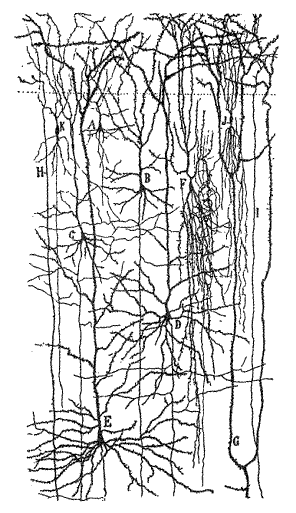 ½ÇÁ¦ ³ú¼¼Æ÷ Á¶Á÷ÀÇ ÀϺθ¦ ³ªÅ¸³»´Â [±×¸² 12] ´Â Àΰ£ µÎ³ú¸¦ ±¸¼ºÇÏ´Â ½Å°æ¸ÁÀÇ º¹À⼺À» Àß º¸¿©ÁØ´Ù. ¿©±â¼ ¿ì¸®´Â ¼¼ °³ÀÇ ÀÛÀº ´º·± (A, B, ¹× C), ÇǶó¹Ìµå ¸ð¾çÀ» ÇÑ Áß°£ Å©±â ´º·± (D ¿Í E), ±×¸®°í ¼¼ °¡Áö À¯ÇüÀÇ ´º·±Çü ¼¼Æ÷ (F, J, ¹× K) µéÀÌ °¢°¢ ½Ã³À½º¿¡ ÀÇÇÏ¿© ¿¬°áµÇ¾î ÀÖÀ½À» ¾Ë ¼ö ÀÖ´Ù. G, H ¹× I ·Î Ç¥½ÃµÈ °ÍµéÀº ÀÌ ±×¸²¿¡ ³ªÅ¸³ °Íº¸´Ù ±íÀº ¼öÁØ¿¡ À§Ä¡ÇÑ ´º·±µé¿¡¼ »¸¾î ³ª¿Â ¼ö»óµ¹±âµéÀÌ´Ù. Àΰ£ µÎ³úÀÇ ´ë³ú ÇÇÁúÀº ¾à 1,000 ¾ï °³ÀÇ ´º·±µé·Î ±¸¼ºµÇ¾î Àֱ⠶§¹®¿¡, ÀÌ ±×¸²ÀÌ ½ÇÁ¦·Î´Â Àüü µÎ³úÀÇ ±ØÈ÷ ÀϺκÐÀ» ³ªÅ¸³¾ »ÓÀ̶ó´Â °ÍÀ» ¾Ë ¼ö ÀÖÀ» °ÍÀÌ´Ù.