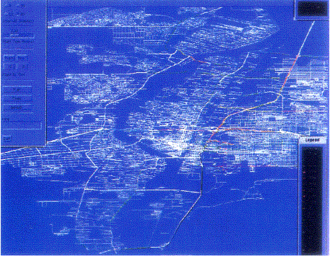 TRANSIMS °¡ ±³Åë È帧 ÆÐÅÏÀ» ¿¬±¸Çϴµ¥ ¾î¶»°Ô »ç¿ëµÇ´Â°¡¸¦ ÀÌÇØÇϱâ À§ÇÏ¿© Ãâ±Ù±æ ·¯½Ã-¾Æ¿ö ½Ã°£´ëÀÇ ±³Åë üÁõ¿¡ ´ëÇÏ¿© »ý°¢Çغ¸ÀÚ. [±×¸² 5] ´Â ¿ÀÀü 6 ½Ã 44 ºÐÀÇ ±³Åë·®À» ³ªÅ¸³»´Â °ÍÀÌ´Ù. ±³Åë·®ÀÌ °¡Àå ÀûÀº ºÎºÐÀº Èò»öÀ¸·Î ³ªÅ¸³»°í, ±³Åë·®ÀÌ Áß°£ Á¤µµÀÎ ºÎºÐÀº ±³Åë·® Á¤º¸¿¡ µû¶ó¼ ³ì»ö¿¡¼ ³ë¶õ»ö ¹üÀ§ÀÇ »öÀ¸·Î ³ªÅ¸³ª¸ç, ±³Åë·®ÀÌ ¾ÆÁÖ ¸¹Àº ºÎºÐÀº È¥ÀâÇÑ Á¤µµ¿¡ µû¶ó Àû»ö¿¡¼ ÀÚÁÖ»öÀ¸·Î ³ªÅ¸³´Ù. [±×¸² 5] ¿¡ ³ªÅ¸³ °Íó·³, À̸¥ ¾ÆÄ§ ±³Åë üÁõÀº 25 ¹ø µµ·Î ºÏ¼ÂÊ, µ¿ÂʹæÇâ¿¡ À§Ä¡ÇÑ °£¼±µµ·Îµé, ±×¸®°í ¸®¿À±×¶õµ¥ °ÀÌ ºÏÂÊ ³¡ ±³·®¿¡¼ ½ÃÀ۵ȴÙ. ±×¸®°í ´ëºÎºÐÀÇ °æ¿ì, ±³Åë È帧ÀÌ ¼ÂÊ, µ¿ÂÊ, ¹× ºÏÂÊ ±³¿Ü ÁÖ°Å Áö¿ª¿¡¼ ±×¸² Áß¾ÓÀÇ °æÁ¦ Ȱµ¿ÀÌ È°¹ßÇÑ Á߽ɰ¡·Î À̵¿µÈ´Ù´Â °ÍÀ» ¾Ë ¼ö ÀÖ´Ù (¿ªÁÖ : ¹Ì±¹Àº ÀϹÝÀûÀ¸·Î - ¶¥ µ¢¾î¸®°¡ ³Ð¾î¼ - ÁÖ°Å Áö¿ª°ú °øÀå, ȸ»ç, °ü°ø¼, »ó°¡ µîÀÇ °æÁ¦ ¹× »çȸ Ȱµ¿ Áö¿ªÀÌ Àß ºÐ¸®µÇ¾î ÀÖ´Ù). ÀÌ·¸°Ô À̸¥ ½Ã°£ÀÓ¿¡µµ ºÒ±¸Çϰí, °í¼Óµµ·Î¿Í ¸î¸î ÁÖ¿ä °£¼±µµ·ÎµéÀº ÀÌ¹Ì ÃÖ¾ÇÀÇ ±³Åë üÁõÀ» ³ªÅ¸³»´Â ³ë¶õ»ö°ú Àû»öÀ¸·Î ³ªÅ¸³´Ù.