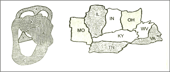 ÄÄÇ»ÅͰ¡ ´ÜÁö °è»ê±â·Î¼ÀÇ °áÁ¤ÀûÀÎ ¿ªÇÒÀ» ÇÏ´Â ´Ù¸¥ ¹®Á¦·Î 4»ö Áöµµ ¹®Á¦°¡ Àß ¾Ë·ÁÁ® ÀÖ´Ù. 4 »ö Áöµµ ¹®Á¦´Â Á¾ÀÌ À§¿¡ ±×·ÁÁø (Á¤È®ÇϰԴ ±¸¸é À§¿¡ ±×·ÁÁø) ÀÓÀÇÀÇ Áöµµ¸¦ 4 °¡Áö À̳»ÀÇ »öÀ¸·Î Ä¥ÇÒ ¼ö Àִ°¡¿¡ °üÇÑ ¹®Á¦´Ù (¿ªÁÖ : °æ°è¸é¿¡ ÀÎÁ¢ÇÑ Áö¿ªÀº ¼·Î ´Ù¸¥ »öÀ¸·Î Ä¥ÇØÁ®¾ß ÇÑ´Ù). 1852 ³â óÀ½À¸·Î ÀÌ ¹®Á¦°¡ ¼¼»ó¿¡ ³ªÅ¸³µÀ» ¶§, »ç¶÷µéÀº °ð¹Ù·Î ±×¸² 7 ¿¡ ³ªÅ¸³ªÀÖ´Â °Íó·³ 4 °³ÀÇ »öÀÌ ÇÊ¿äÇÏ´Ù´Â °ÍÀ» ¾Ë¾Ò´Ù. ±×¸²¿¡¼ ¿ÞÂÊÀÇ °æ¿ì´Â ½ÇÁ¦·Î 5 °¡Áö »öÀÌ »ç¿ëµÇ¾ú°í (¿ªÁÖ : ±×¸²¿¡¼ À§ ºÎºÐÀÇ X ¿Í Áß°£ÀÇ X ´Â °æ°è¸éÀÌ ÀÎÁ¢ÇÏÁö ¾ÊÀ¸¹Ç·Î °°Àº »öÀ¸·Î Ä¥ÇØµµ µÈ´Ù. Áï, 4 »öÀÌ¸é µÈ´Ù), ¿À¸¥ÂÊÀÇ °æ¿ì´Â 3 °¡Áö»öÀ¸·Î´Â Á¶°Ç¿¡ ¸Â°Ô Ä¥ÇÒ ¼ö ¾øÀ½À» ³ªÅ¸³½´Ù. Á¤ÀÛ ¹®Á¦°¡ µÈ °ÍÀº Àü ¼¼°è À§´ëÇÑ ¼öÇÐÀÚµéÀÌ ÀÏ ¹é³â ÀÌ»ó ³ë·ÂÇÏ¿´À½¿¡µµ ºÒ±¸Çϰí 4 °¡Áö¸¦ ÃʰúÇÏ´Â Áï, 5 °¡Áö ÀÌ»óÀÇ »öÀ» ÇÊ¿ä·Î ÇÏ´Â Áöµµ°¡ ¾ø´Ù´Â °ÍÀ» Áõ¸íÇÒ ¼ö ¾ø¾ú´Ù´Â °ÍÀÌ´Ù.