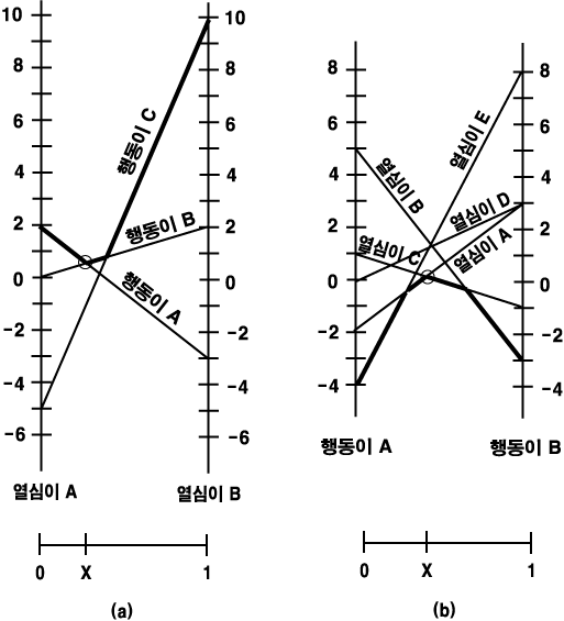¸ØÃãÁ¡ÀÌ Á¸ÀçÇÏÁö ¾Ê´Â »óȲ¿¡¼ÀÇ Àü·« ¼±ÅÃÀÇ ¾î·Á¿òÀº ³ªÁß¿¡ ¹è¿ï È¥ÇÕ Àü·« (mixed strategy) À̶ó´Â °³³ä¿¡ ÀÇÇÏ¿© ÇØ°áÀÌ µÈ´Ù. È¥ÇÕÀü·«Àº 2ÀÎ ¿µÇÕ°ÔÀÓ¿¡¼ÀÇ À̼ºÀûÀÎ ÇൿÀ» ¿ÏÀüÈ÷ ºÐ¼®ÇØ ÁØ´Ù. ¶ÇÇÑ °ÔÀÓ³ª¹« (game tree) ¸¦ ¹è¿òÀ¸·Î½á Àü·«ÀÇ °³³äÀ» º¸´Ù ÀÚ¼¼È÷ »ìÆìº¸°í, È¿¿ëÀÌ·Ð (utility theory) À» ¹è¿òÀ¸·Î½á ¼ÒµæÀÇ °³³äÀ» º¸´Ù ÀÚ¼¼È÷ »ìÆìº»´Ù.