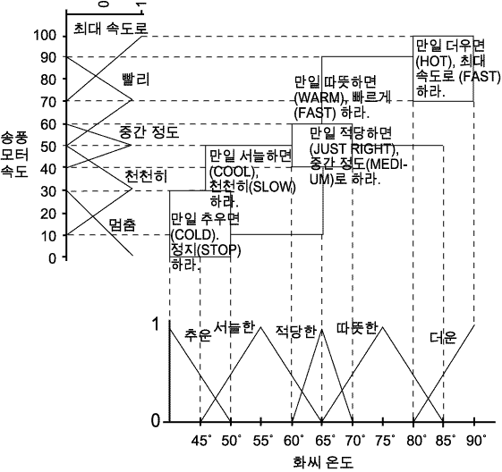 ¼Â°, ¿©·¯ºÐÀº ÆÛÁö ±ÔÄ¢À» ¼±ÅÃÇÑ´Ù. ÀÌ °úÁ¤Àº ¸ðÅÍ ¼ÓµµÀÇ ÁýÇÕÀ» ¿Âµµ ÁýÇÕ°ú ¿¬°ü½ÃŲ´Ù. ¿ì¸®´Â ¸ðÅÍ ¼Óµµ ÁýÇÕÀ» °¢ ¿Âµµ ÁýÇÕ¿¡ ÇÒ´çÇÏ¿©¾ß ÇÑ´Ù. Ãß¿î (COLD) À¸·ÎºÎÅÍ ½ÃÀÛÇÏÀÚ. ¿ì¸®´Â °ø±â°¡ ³Ê¹« Â÷°¡¿ì¸é ¸ðÅ͸¦ ¸ØÃ߱⸦ ¿øÇÑ´Ù. ¿¡¾îÄÁÀº ¿Âµµ¸¦ Àû´çÇÏ°Ô À¯ÁöÇϵµ·Ï ¸ðÅÍ ¼Óµµ¸¦ º¯È½ÃÄÑ¾ß ÇÑ´Ù. ±×·¡¼ ¿ì¸®´Â ù° ±ÔÄ¢À» ¾ò´Â´Ù. ¸¸ÀÏ X °¡ Ãß¿ì¸é (COLD), Y ´Â Á¤ÁöÇÑ´Ù (STOP). ½Ç³» °ø±â°¡ ¼´ÃÇØÁö¸é ¸ðÅÍ´Â ¾à°£¸¸ µ¹¾Æ¾ß ÇÑ´Ù. ¸¸ÀÏ X °¡ ¼´ÃÇϸé (COOL), Y ´Â õõÈ÷ ÇÑ´Ù (SLOW). °ø±â°¡ Àû´çÇÏ¸é ¸ðÅÍ´Â Áß°£ Á¤µµ·Î µ¹¾Æ¾ß ÇÑ´Ù. ¸¸ÀÏ X °¡ Àû´çÇϸé (JUST RIGHT), Y ´Â Áß°£ Á¤µµ (MEDIUM) ÀÌ´Ù. °ø±â°¡ µû¶æÇØÁö¸é ¸ðÅÍ´Â °¡¼ÓÇØ¾ß ÇÑ´Ù. ¸¸ÀÏ X °¡ µû¶æÇϸé (WARM), Y ´Â »¡¸® (FAST) ÀÌ´Ù. ±×¸®°í °ø±â°¡ ´õ¿öÁö¸é ¸ðÅÍ´Â Àü¼Ó·ÂÀ¸·Î µ¹¾Æ¾ß ÇÑ´Ù. - ¸¸ÀÏ X °¡ ´õ¿ì¸é (HOT), Y ´Â ÃÖ´ë ¼Óµµ·Î (BLAST) ÇÑ´Ù. À̰͵éÀº ´ÙÀ½°ú °°Àº ´Ù¼¸ °³ÀÇ ±ÔÄ¢À» Á¦°øÇÑ´Ù.