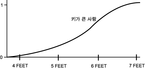 ÀÚµ¥´Â ÀÌ ÆÛÁö ÁýÇÕÀ» ¼Ò¼Ó°î¼±À̶ó°í ºÒ·¶´Ù. À̰ÍÀº ¸·½º ºí·¢ÀÇ ¾Ö¸ÅÇÑ ¸®½ºÆ® ȤÀº ¾Ö¸ÅÇÑ °î¼±°ú °°ÀÌ ÀÛµ¿ÇÑ´Ù. ¸ðµç ½ÅÀå¿¡ ´ëÇØ À̰ÍÀº ۰¡ Å« »ç¶÷ÀÇ ÁýÇÕ¿¡¼ÀÇ Á¤µµ ¶Ç´Â ÇÇÆ® ¶Ç´Â ¼Ò¼Ó Á¤µµ¸¦ Á¦°øÇÑ´Ù. ۰¡ Å« Á¤µµ´Â Ű¿¡ ´ëÇÑ ºÎµå·¯¿î ÇÔ¼öÀÌ´Ù. ¸ðµç »ç¶÷Àº ¾î´À Á¤µµ¸¸Å ۰¡ Å©´Ù. ¶ÇÇÑ ¸ðµç »ç¶÷Àº ¾î´À Á¤µµ¸¸Å ۰¡ Å©Áö ¾Ê´Ù. ±×·¡¼ ۰¡ Å©Áö ¾ÊÀ½ (NOT-TALL) Àº ۰¡ Å (TALL) °î¼±ÀÇ ¹Ý´ëó·³ º¸Àδ٠(±×¸² 11).