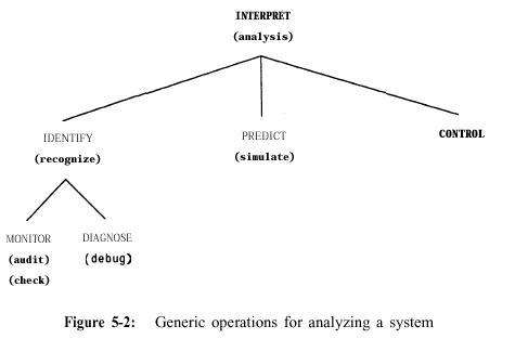 A broad view of kinds of problems, described in terms of synthesis and analysis of systems, suggests two points of view for describing a system¡¯s design: a configuration in terms of structural relations of functional components, versus a plan for the processes that characterize the system¡¯s behavior. From the point of view of a system, reasoning may involve a limited set of generic operations, e.g.,MONITOR, DIAGNOSE, MODIFY. In heuristic classification, this takes the form of a sequence of mapping between classifications corresponding to each generic operation.
