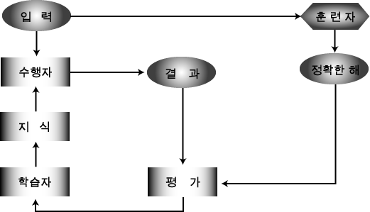 ±×¸² 1 Àº ÀÚµ¿ÇнÀÀÇ Æ²À» ¹¦»çÇϰí ÀÖ´Ù. ÀÚµ¿ÇнÀÀÇ ¿ä¼Ò·Î´Â ¼öÇàÀÚ (Performer), Áö½Ä (Knowledge), ÇнÀÀÚ (Learner), Æò°¡ (Critic) °¡ ÀÖ´Ù. ¿ÜºÎ·ÎºÎÅÍ ÀÔ·ÂÀÌ µé¾î¿À¸é ¼öÇàÀÚ°¡ ÀÌ ÀÔ·Â (Input) À» Åä´ë·Î °á°ú (ÇØ) ¸¦ Á¦½ÃÇÑ´Ù. ÀÚµ¿ÇнÀ½Ã½ºÅÛ¿¡¼ ³ª¿Â ÀÌ °á°ú¿Í ȯ°æ¿¡¼ ½ÇÁ¦·Î ³ª¿Â °á°ú ¶Ç´Â ÈÆ·ÃÀÚ°¡ Á¦°øÇÏ´Â Á¤È®ÇÑ ÇØ¿ÍÀÇ Æò°¡¸¦ ÅëÇØ ±× Â÷À̸¦ º¸Á¤ÇÏ´Â ¹æÇâÀ¸·Î ÇнÀÀÌ ÀϾ¸ç À̰ÍÀÌ Áö½ÄÀ¸·Î ÃàÀûµÈ´Ù. À̸¦ Åä´ë·Î ¼öÇàÀÚ´Â ´ÙÀ½ ¹ø ÀԷ¿¡ ´ëÇØ ÇØ¸¦ Á¦½ÃÇÏ°Ô µÈ´Ù.