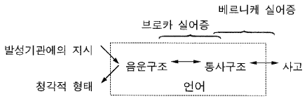 ºê·ÎÄ« ½Ç¾îÁõÀº ´ë°³ ÀÌÇØ·Â°ú »ý¼º´É·ÂÀ» µ¿½Ã¿¡ ¼Õ»ó½Ã۱⠶§¹®¿¡, ÀÌ µÎ °¡Áö°¡ °øÀ¯Çϰí ÀÖ´Â ³»Àç¹®¹ýÀÇ ¾î¶² ºÎºÐ - À½¿îÀû ȤÀº Åë»çÀû ±¸Á¶ÀÇ Ã³¸®ÀåÄ¡¿¡ ¼Õ»óÀÌ ¿Â °ÍÀÌ ¾Æ´Ñ°¡ »ý°¢µÈ´Ù. À̿ʹ ´ëÁ¶ÀûÀ¸·Î º£¸£´ÏÄÉ ½Ç¾îÁõ ȯÀÚµéÀº ¾ð¾î¿Í »ç°í¸¦ ¿¬°áÇÏ´Â ºÎÀ§¿¡ ¹®Á¦°¡ »ý±ä °ÍÀ¸·Î º¸ÀδÙ. ÀÌ °æ¿ì¿¡µµ ¿ª½Ã ÀÌÇØ·Â°ú »ý¼º ´É·Â ¸ðµÎ°¡ ´Ù ¿µÇâÀ» ¹Þ´Â´Ù. ¾Õ¼ ¿ì¸®°¡ °£·«ÇÏ°Ô ¾ð¾îÀÇ ±¸¼ºÀ» ³ªÅ¸³½ ±â´ÉÁÖÀÇÀûÀÎ ±×¸²À¸·Î ´Ù½Ã µ¹¾Æ°¡¼, ´ë·« ±×¸² 11.2 ¿¡¼ Ç¥½ÃµÈ ºÎºÐ¿¡ ÀÌµé ½Ç¾îÁõÀ» À§Ä¡½Ãų ¼ö ÀÖ°Ú´Ù.