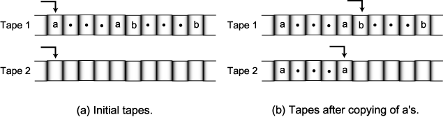 수 있다. 먼저 모든 a 를 두 번째 테이프에 복사하고, 그리고 난 후 각각의 a 를