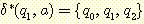 ÀüÀÌ ¥ä(q0, a) = q1 À» Ç¥ÇöÇÑ´Ù. Ãʱ⠻óÅ´ ¶óº§ÀÌ ºÙÁö