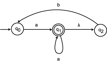 Á¤Á¡µéÀÌ Á¸ÀçÇÏ°Ô µÈ´Ù. ¶óº§ a ¸¦ °®´Â °£¼± (q0, q1) Àº