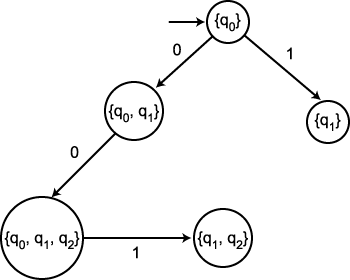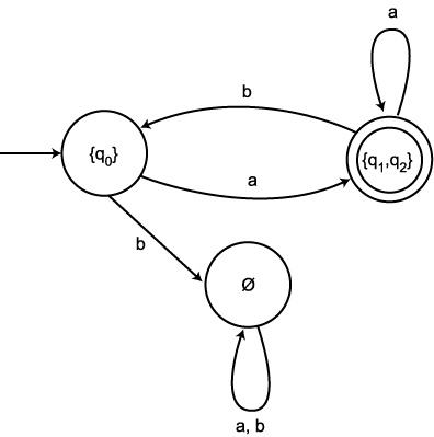Á»´õ Çü½ÄÀûÀ¸·Î, M = (Q, ¥Ò, ¥ä, q0, F) °¡ °áÁ¤Àû À¯ÇÑ ÀνıâÀÎ °æ¿ì ÀÌ¿¡ ´ëÇÑ ÀüÀÌ ±×·¡ÇÁ GM Àº Á¤È®È÷ |Q| °³ÀÇ Á¤Á¡À» °¡Áö¸ç, °¢ Á¤Á¡¿¡´Â ¼·Î ´Ù¸¥ ¶óº§ qf ¡ô F ¸¦ °®´Â Á¤Á¡µéÀÌ Á¾·á Á¤Á¡(final vertex)ÀÌ´Ù. Á¤ÀÇ (Q, ¥Ò, ¥ä, q0, F) ·ÎºÎÅÍ ÀüÀÌ ±×·¡ÇÁ¸¦ ±¸¼ºÇÏ´Â °ÍÀº ¾ÆÁÖ ½¬¿î ÀÏÀ̰í, ±× ¹Ý´ëµµ ¿ª½Ã ½¬¿î ÀÏÀÌ´Ù.