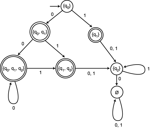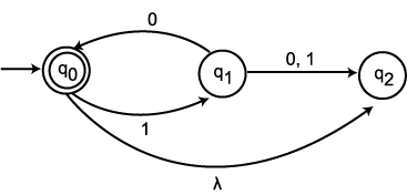 M = ({q0, q1, q2}, {0, 1}, ¥ä, q0, {q1})