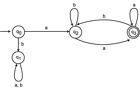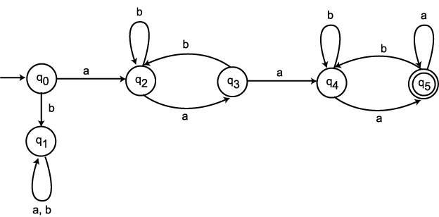 °áÁ¤Àû À¯ÇÑ Àνıâ´Â ´ÙÀ½°ú °°Àº ¹æ½ÄÀ¸·Î µ¿ÀÛÇÑ´Ù. ÀÌ ¿ÀÅ丶Ÿ´Â óÀ½¿¡ Ãʱ⠻óÅ q0 ¿¡ ÀÖ´Â °ÍÀ¸·Î °¡Á¤Çϸç, ÀÔ·Â ÀåÄ¡´Â ÀÔ·Â ¹®ÀÚ¿ÀÇ °¡Àå ¿ÞÂÊ ½Éº¼¿¡ ³õ¿© ÀÖ´Ù. ¿ÀÅ丶ŸÀÇ ¸ÅÀ̵¿¸¶´Ù, ÀÔ·Â ÀåÄ¡´Â ÀÔ·Â ¹®ÀÚ¿ÀÇ °¡Àå ¿ÞÂÊ ½Éº¼¿¡ ³õ¿© ÀÖ´Ù. ¿ÀÅ丶ŸÀÇ ¸ÅÀ̵¿¸¶´Ù, ÀÔ·Â ÀåÄ¡´Â ÇÑ ÀÚ¸®¾¿ ¿À¸¥ÂÊÀ¸·Î À̵¿ÇÑ´Ù. Áï ÀÔ·Â ¹®ÀÚ¸¦ Çϳª¾¿ ÀоîµéÀδÙ. ÀÔ·Â ¹®ÀÚ¿ÀÇ ¸Ç ³¡¿¡ µµ´ÞÇßÀ» °æ¿ì, ¿ÀÅ丶Ÿ°¡ Á¾·á »óÅ¿¡ ÀÖÀ¸¸é ÇØ´ç ¹®ÀÚ¿ÀÌ ½ÂÀεǰí, ±×·¸Áö ¾ÊÀ¸¸é ±× ¹®ÀÚ¿Àº °ÅºÎµÈ´Ù. ÀÔ·Â ¸ÞÄ¿´ÏÁòÀº ¿ÀÁ÷ ¿ÞÂʺÎÅÍ ¿À¸¥ÂÊÀ¸·Î À̵¿ÇÒ ¼ö ÀÖ°í, °¢ ´Ü°è¸¶´Ù Á¤È®È÷ ÇÑ ½Éº¼¸¸ ÀоîµéÀδÙ. ÇϳªÀÇ ³»ºÎ »óÅ·κÎÅÍ ´Ù¸¥ »óÅ·ÎÀÇ ÀüÀÌ´Â ÀüÀÌ ÇÔ¼ö ¥ä ¿¡ µû¶ó °áÁ¤µÈ´Ù. ¿¹¸¦ µé¾î, ´ÙÀ½°ú °°Àº ÀüÀ̰¡ ÀÖ°í