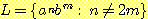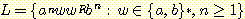 À̸¦ º¸À̱â À§Çؼ´Â ±× ¾ð¾î¿¡ ´ëÇÑ ¹®¸Æ-ÀÚÀ¯ ¹®¹ýÀ» ¸¸µé¾î³»¾ß ÇÑ´Ù. n = m ÀÎ °æ¿ì´Â ¿¹Á¦ 11 ¿¡¼ ¾Ë¾Æº¸¾Ò´Ù. n > m ÀÎ °æ¿ì¸¦ »ý°¢ÇØ º¸ÀÚ. ¸ÕÀú a ¿Í b ÀÇ °³¼ö°¡ °°Àº ¹®ÀÚ¿À» »ý¼ºÇÑ ÈÄ Ãß°¡·Î a µéÀ» ¿ÞÂÊ¿¡ µ¡ºÙÀδÙ. ÀÌ·± ¹®ÀÚ¿Àº ´ÙÀ½°ú °°Àº »ý¼º±ÔÄ¢¿¡ ÀÇÇÏ¿© À¯µµµÉ ¼ö ÀÖ´Ù.