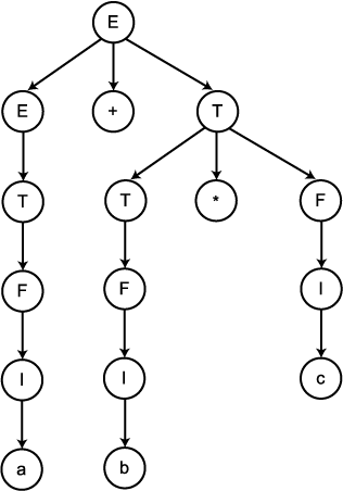 ¹®Àå a + b * c ¿¡ ´ëÇÑ À¯µµ Æ®¸®°¡ ±×¸² 6 ¿¡¼ º¸¿©Áø´Ù. ÀÌ ¹®ÀÚ¿¿¡ ´ëÇÑ ´Ù¸¥ À¯µµ Æ®¸®´Â Á¸ÀçÇÏÁö ¾Ê´Â´Ù. ÀÌ ¹®¹ýÀº ¸ðÈ£ÇÏÁö ¾ÊÀ¸¸ç, ¶ÇÇÑ ¿¹Á¦ 11 ÀÇ ¹®¹ý°ú µ¿Ä¡ÀÌ´Ù. ÀÌ Æ¯Á¤»ç·Ê¿¡ ´ëÇÑ À̵é ÁÖÀåµéÀ» È®ÀÎÇÏ´Â °ÍÀº ±×¸® ÈûµéÁö ¾Ê´Ù. ±×·¯³ª, ÀϹÝÀûÀ¸·Î, ÁÖ¾îÁø ¹®¸Æ-ÀÚÀ¯ ¹®¹ýÀÌ ¸ðÈ£ÇÑÁö ¶Ç´Â µÎ °³ÀÇ ÁÖ¾îÁø ¹®¹ýÀÌ µ¿Ä¡ÀÎÁö¸¦ °áÁ¤ÇÏ´Â ¹®Á¦´Â ¾ÆÁÖ ¾î·Á¿î ¹®Á¦µéÀÌ´Ù. ½ÇÁ¦·Î, ³ªÁß¿¡ ¿ì¸®´Â ÀÌµé ¹®Á¦µéÀ» ÇØ°áÇÒ ¼ö ÀÖ´Â ÀϹÝÀûÀÎ ¾Ë°í¸®ÁòÀÌ Á¸ÀçÇÏÁö ¾Ê´Â´Ù´Â °ÍÀ» º¸ÀÏ °ÍÀÌ´Ù.