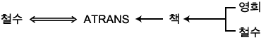 ¿©±â¼ "ö¼ö" ´Â ATRANS ÀÇ ÁÖüÀ̸ç, ATRANS ÀÇ ´ë»óÀº "Ã¥" À̰í, º¯ÈµÈ ³»¿ëÀº "Ã¥" °ú "ö¼ö" ¿ÍÀÇ °ü°è°¡ "Ã¥" °ú "¿µÈñ" ÀÇ °ü°è·Î ¹Ù²î´Â °ÍÀÌ´Ù. À̿ܿ¡µµ »óŸ¦ Ç¥ÇöÇϱâ À§ÇØ ´ÙÀ½°ú °°Àº Ç¥ÇöÀ» »ç¿ëÇß´Ù.