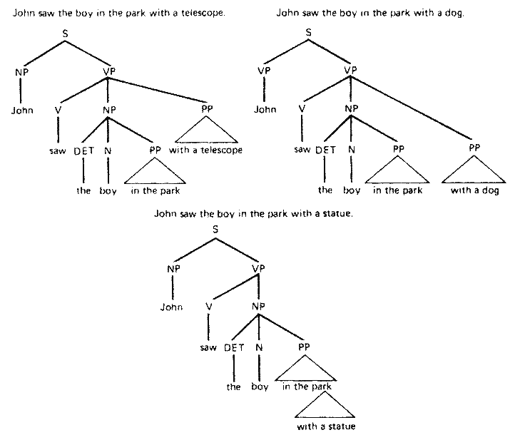 ¶ó´Â ¹®ÀåÀÇ ±¸¼ºÀ» ºÐ¼®ÇÏ´Â °úÁ¤¿¡¼ ÀüÄ¡»ç°í " with the ice cream counter" ¿¡ ÀÇÇÏ¿© ¼ö½ÄµÇ´Â °ÍÀÌ ¾î´À °ÍÀÎÁö¸¦ °áÁ¤ÇÏ´Â °ÍÀ» »ý°¢ÇØ º¸ÀÚ. ice cream counter °¡ ÀÖ´Â drug store ¸¦ ÀǹÌÇÏ´Â °ÍÀÎÁö, ȤÀº John ÀÌ ice cream counter ¿Í ÇÔ²² drug store ·Î °¬´ÂÁö´Â ¹®Àå ÀǹÌÀÇ ºÐ¼® ´Ü°è¿¡¼ °áÁ¤ÇÏ´Â ¼ö ¹Û¿¡ ¾ø´Ù. µû¶ó¼ Á¾Á¾ ÀÌ·¯ÇÑ ´Ü°èµéÀ» ±¸º°ÇÏ´Â °ÍÀÌ À¯¿ëÇϱä ÇÏÁö¸¸, À̵éÀÌ ¼·Î »óÈ£°ü°è°¡ ÀÖÀ» ¼ö ÀÖÀ¸¹Ç·Î, ÀÌ ´Ü°èµéÀ» ¿ÏÀüÈ÷ ±¸ºÐÇÏ´Â °ÍÀº ºÒ°¡´ÉÇÏ´Ù.