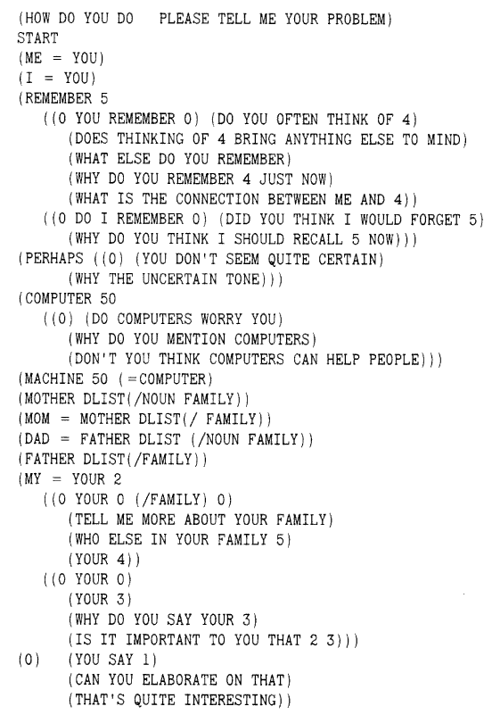 ¾ð¾îÀÇ ÀÌÇØ ¹®Á¦¿¡ ´ëÇÑ ¾ÆÁÖ ´Ü¼øÇÑ ÇØ°á ¹æ¹ýÀ¸·Î´Â, ÇÊ¿äÇÑ ¸ðµç ÀÛ¾÷À» ÇÑ ´Ü°è·Î ¸ð¾Æ¼ ÇØ°áÇÏ´Â ¹æ¹ýÀÌ ÀÖ´Ù. ÀÌ ¹æ¹ýÀº ÀԷ¹®ÀåÀ» ÁÖ¿ä´Ü¾î (keyword) ·Î ±¸¼ºµÈ °£´ÜÇÑ ÅÛÇø´ (template, ÇüƲ) µé¿¡ ´ëÇØ ºñ±³½ÃÅ´À¸·Î½á ÀÌ·ç¾îÁø´Ù. ÀÌ·¯ÇÑ ¹æ¹ýÀÇ ÀÌÁ¡Àº ¹®¹ýÀÌ ºñÁ¤»óÀûÀÎ ¹®Àåµµ ÀÎ½ÄµÉ ¼ö ÀÖ´Ù´Â °ÍÀÌ´Ù. ÀÌ ¹æ¹ý¿¡¼´Â ¾Ë·ÁÁø ´Ü¾îµé¸¸ÀÌ ÀÎ½ÄµÇ°í ³ª¸ÓÁöµéÀº ¹«½ÃµÈ´Ù. ÀÌ·¯ÇÑ ¹æ¹ýÀ» ±Ù»çÀûÀÎ Á¤ÇÕ (approximate matching) À̶ó°í »ý°¢ÇÒ ¼ö ÀÖ´Ù. ÀÌ ¹æ¹ýÀ» »ç¿ëÇÑ ÇÁ·Î±×·¥Àº µÎ °¡Áö°¡ ÀÖ´Ù. Çϳª´Â ELIZA [Wel 66] À̰í, ´Ù¸¥ Çϳª´Â PARRY [Col 75] ÀÌ´Ù.