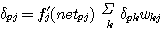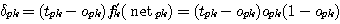¿©±â¼ tpj ´Â p ¹øÂ° ¸ñÇ¥Ãâ·Â ÆÐÅÏÀÇ j ¼ººÐ, opj ´Â p ¹øÂ° ÀÔ·ÂÆÐÅÏÀ¸·ÎºÎÅÍ ³×Æ®¿öÅ©°¡ °è»êÇÑ Ãâ·ÂÀÇ j ¼ººÐ. ¥äpj = tpj - opj ´Â ¸ñÇ¥Ãâ·Â°ú ½ÇÁ¦Ãâ·ÂÀÇ Â÷ (¿ÀÂ÷), ¥Äpwj ´Â ÀÔ·ÂÃþ iunit ·ÎºÎÅÍ Ãâ·ÂÃþ junit ¿¡¼ ¿¬°á°µµÀÇ º¯È·®ÀÌ´Ù.