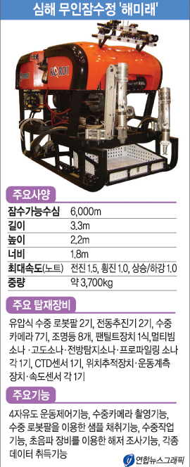 ÃÑ Áß·® 3õ700§¸ÀÇ ¹«ÀÎ Àá¼öÁ¤ 'ÇØ¹Ì·¡'´Â 6°³ÀÇ Àüµ¿ÃßÁø±â¸¦ ÅëÇØ 1.0~1.5³ëÆ®(knot)ÀÇ ¼Óµµ·Î ÀüÈÄ, Á¿ì, »óÇÏ ¿îÇàÀÌ